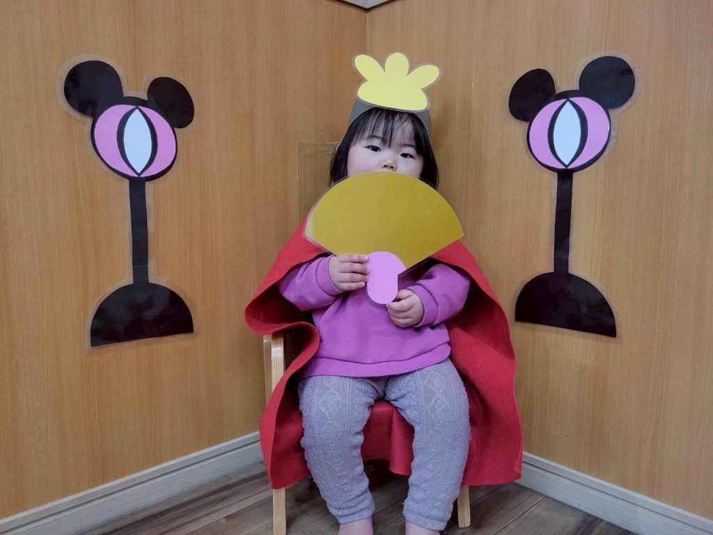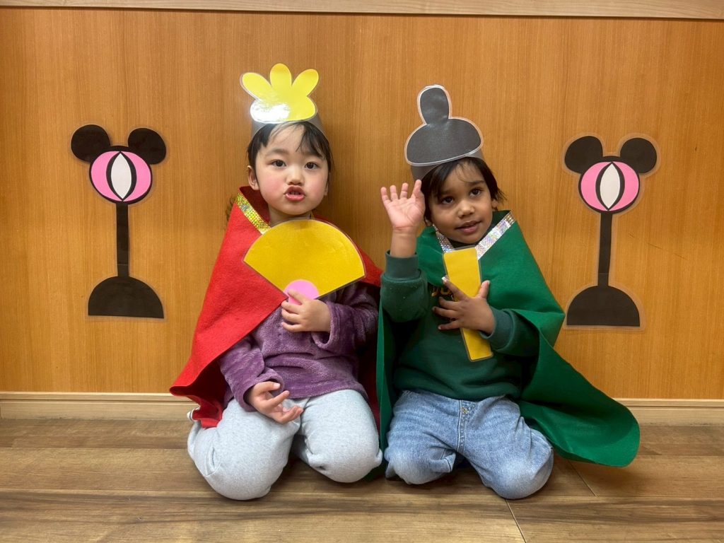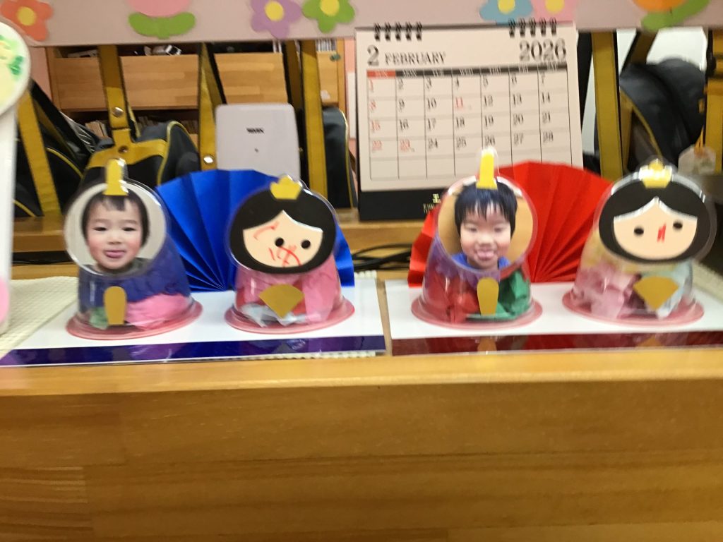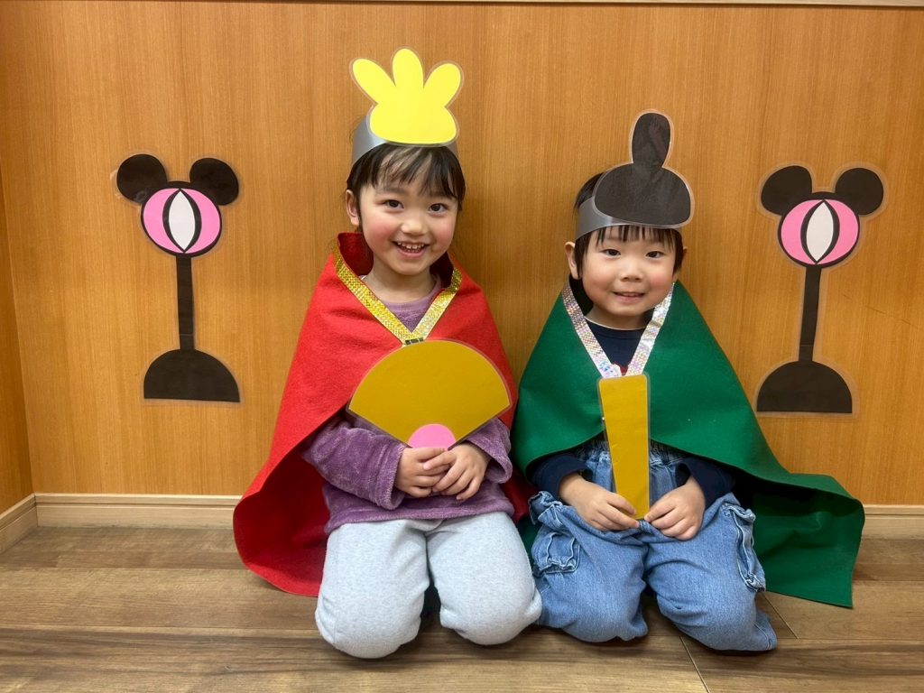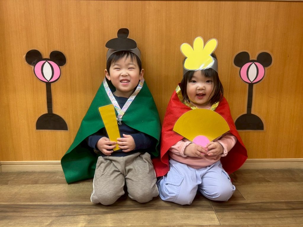 ひよこ組さんときりん組さんは、おひなさまとおだいりさまになりきって写真を撮りました📷