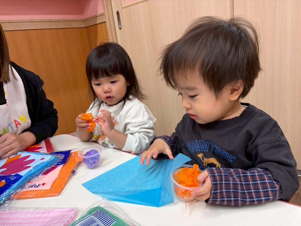 カップの中の花紙はそれぞれ好きな色を選んでクシャクシャと丸めて入れました⭐︎