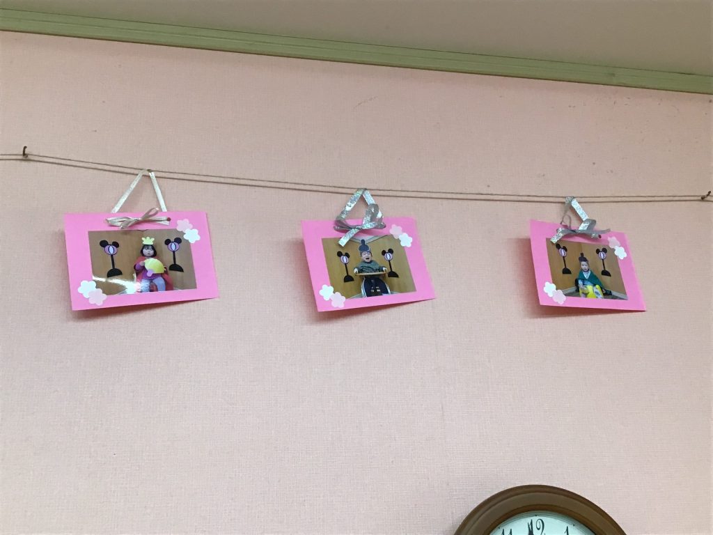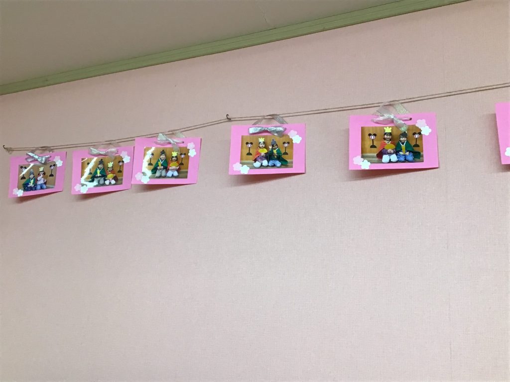 ということて、みんなが作ったひなまつりの製作を飾りました♪