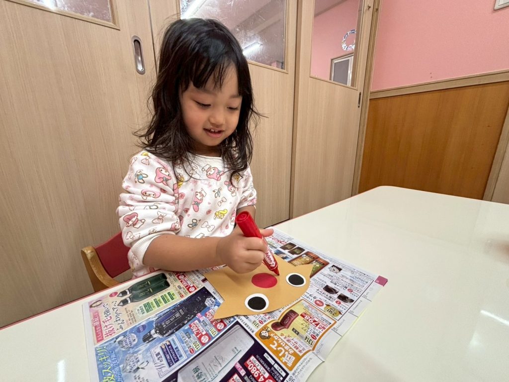 お顔も貼って、お口も描いて可愛いお顔の完成です💕