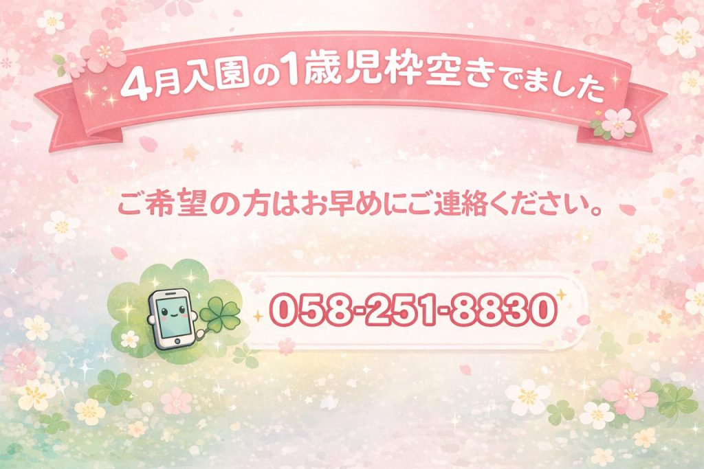 入園募集状況については岐阜市役所 保育空き状況にてご覧いただけます。